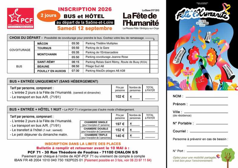 Comme tous les ans, la fédération PCF de Saône-et-Loire organise des séjours, tout compris pour se rendre à la fête du journal l'Humanité.