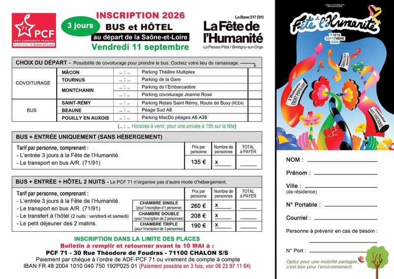 Comme tous les ans, la fédération PCF de Saône-et-Loire organise des séjours, tout compris pour se rendre à la fête du journal l'Humanité.