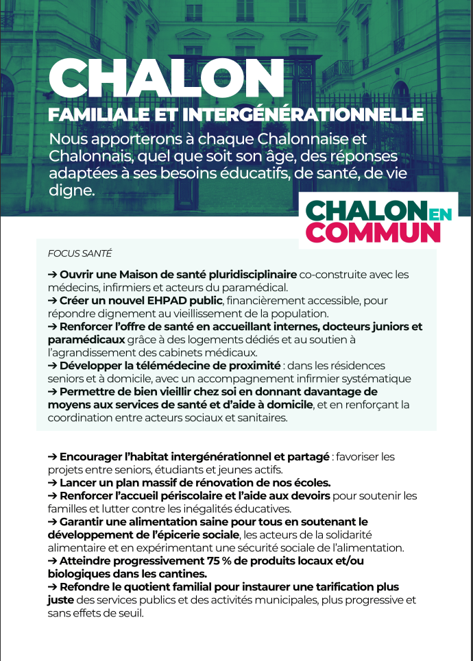 En mars prochain, les Chalonnaises et les Chalonnais feront un choix décisif pour l’avenir de notre ville. Ce choix engage bien plus qu’un mandat. Il engage la capacité de Chalon à protéger ses habitants, à se renouveler et à préparer l’avenir dans un monde traversé par de profondes transformations sociales, écologiques et économiques.